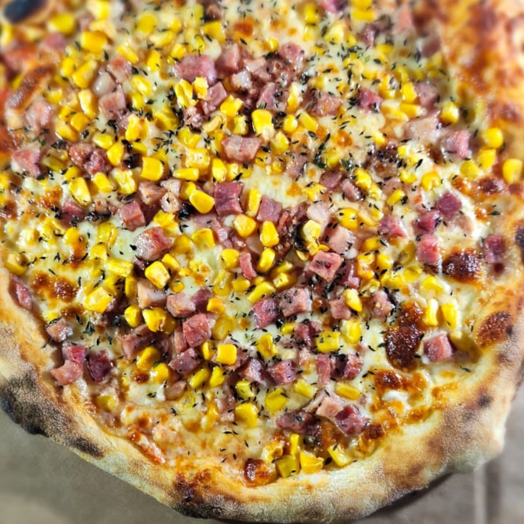 Molho de Tomate , Mozzarella, Bacon, Milho e Orégano