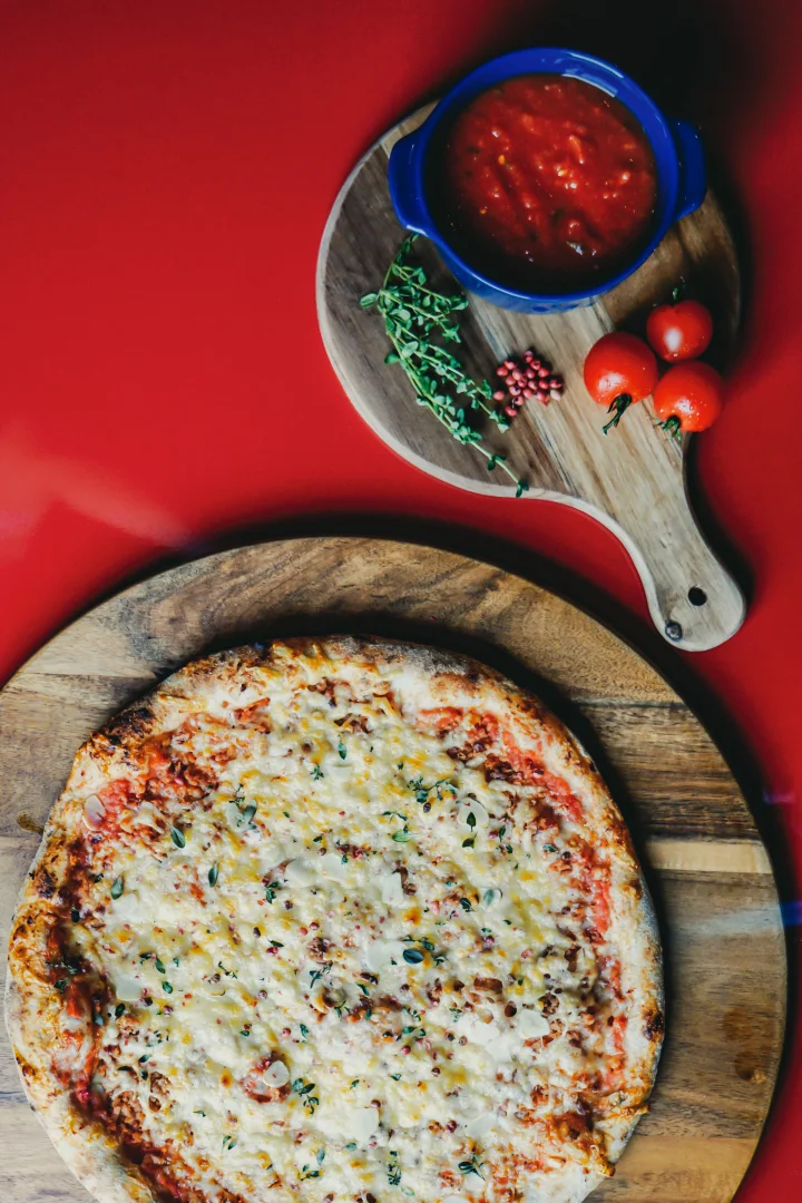 Molho de Tomate, Mozzarella, Gorgonzola, Cogumelos Salteados e Raspa de Limão Siciliano.