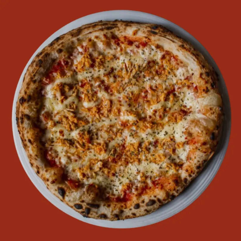 Molho de Tomate , Mozzarella, Catupiry Original, Gorgonzola (Queijo Azul), Parmesão Ralado na Hora e Raspas de Limão Siciliano